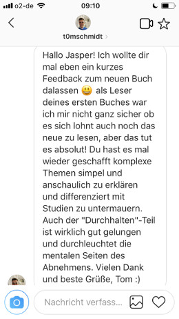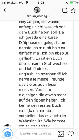 Ich verspreche dir, dass es keinen Haken gibt. Du bekommst das Buch wirklich umsonst. Lediglich die Produktions- und Versandkosten in Höhe von 6,95 € bitte ich dich zu übernehmen. Ich verschenke das Buch, um mich bei meiner Community zu bedanken, um noch mehr Menschen beim Abnehmen zu helfen und weil es mir Spaß macht Gutes zu tun.
