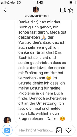 1. Ich kämpfe gegen die Abnehm-Industrie und alle Abnehm-Mythen die uns täglich manipulieren. Mit meinem Buch, versuche ich möglichst viele Menschen zu erreichen und ihnen die Augen zu öffnen. Abnehmen kann so leicht sein! Und das ohne Verzicht.