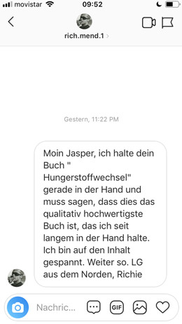 Ich sende dir mein Buch Hungerstoffwechsel - Raus aus der Abnehmfalle zu dir nach Hause und das komplett GRATIS. Alles worum ich dich bitte, ist es die Logistik- und Versandkosten in Höhe von 6,95 € zu übernehmen.